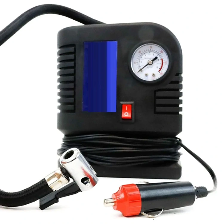 3. Подключите компрессор, включите питание через розетку 12 В, накачайте до рекомендованного давления, считывая показания металлического манометра.