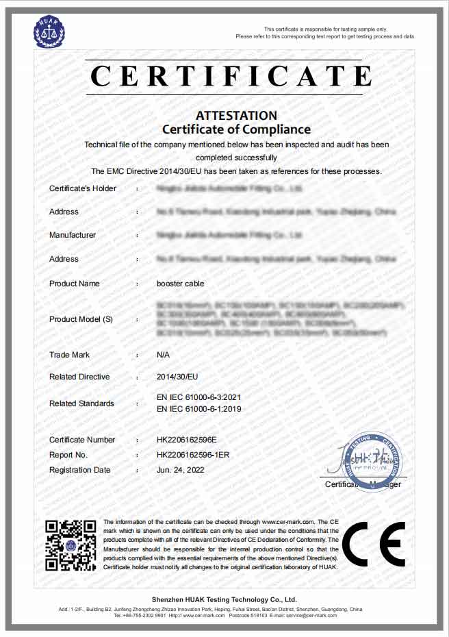 • Тепловая безопасность: Все кабелипротестирован на безопасность при сильных скачках тока, предотвращая перегрев при многократных попытках зажигания — важнейшее требование дляавтовторичный рынок.