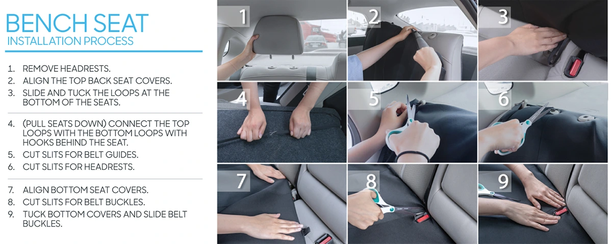 Покрытие 90%+: подходит для большинства легковых автомобилей, грузовиков, фургонов и внедорожников с регулируемыми/съемными подголовниками.