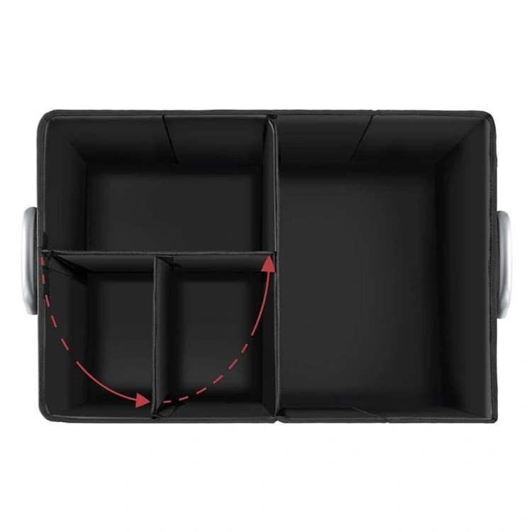 **Прочные деревянные перегородки** Складной автомобильный органайзер оснащен прочными деревянными перегородками, обернутыми тканью Oxford 600D, которая устойчива к износу, водонепроницаема и легко протирается. Крышка, внешние стенки и основание изготовлены из древесноволокнистой плиты средней плотности толщиной 2,5 мм и жемчужного хлопка, что обеспечивает серьезную устойчивость и несущую способность.