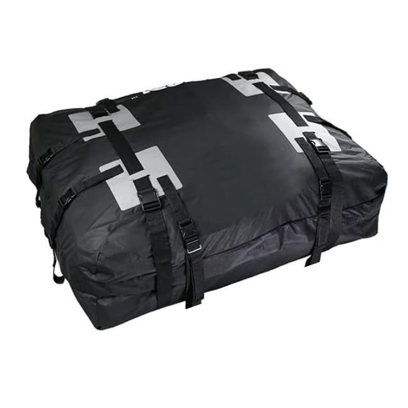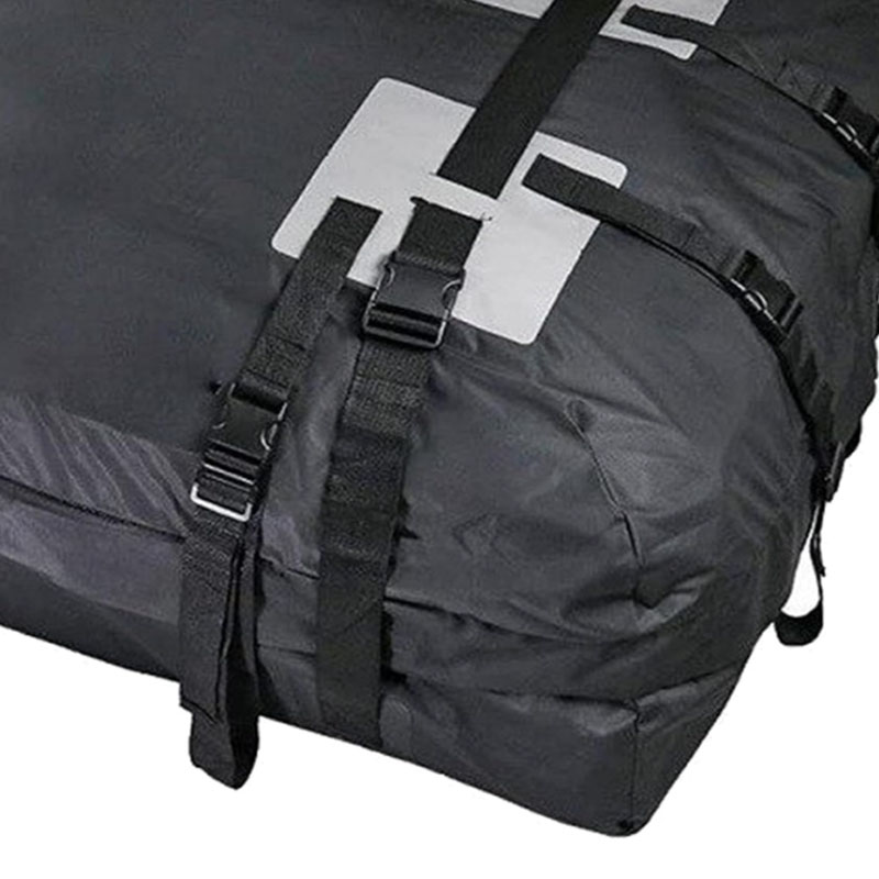 Советы по установке: поместите сумку по центру крыши, проденьте ремни через дверные коробки (или рейлинги на крыше) и затяните крест-накрест для максимальной устойчивости.